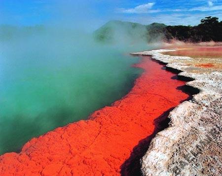 این منطقه میزبان یکی از عجیب ترین نقاط روی زمین است. جایی که استخرهای آبگرم در رنگ های مختلف وجود دارند. این استخرهای طبیعی که معروف به استخر شامپاین هستند قدمتشان به ۹۰۰ سال می رسد.